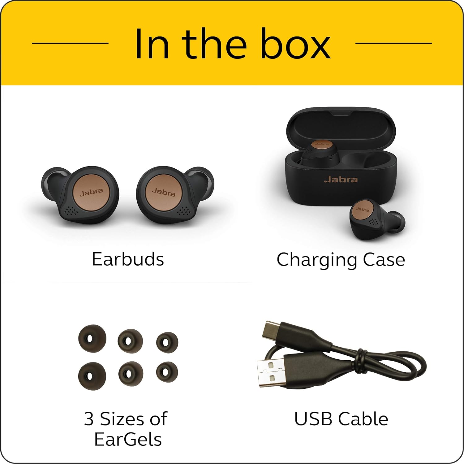 Jabra Elite Active 75t True Wireless Bluetooth Earbuds, Copper Black – Wireless Earbuds for Running and Sport, Charging Case Included, 24 Hour Battery, Active Noise Cancelling Sport Earbuds.