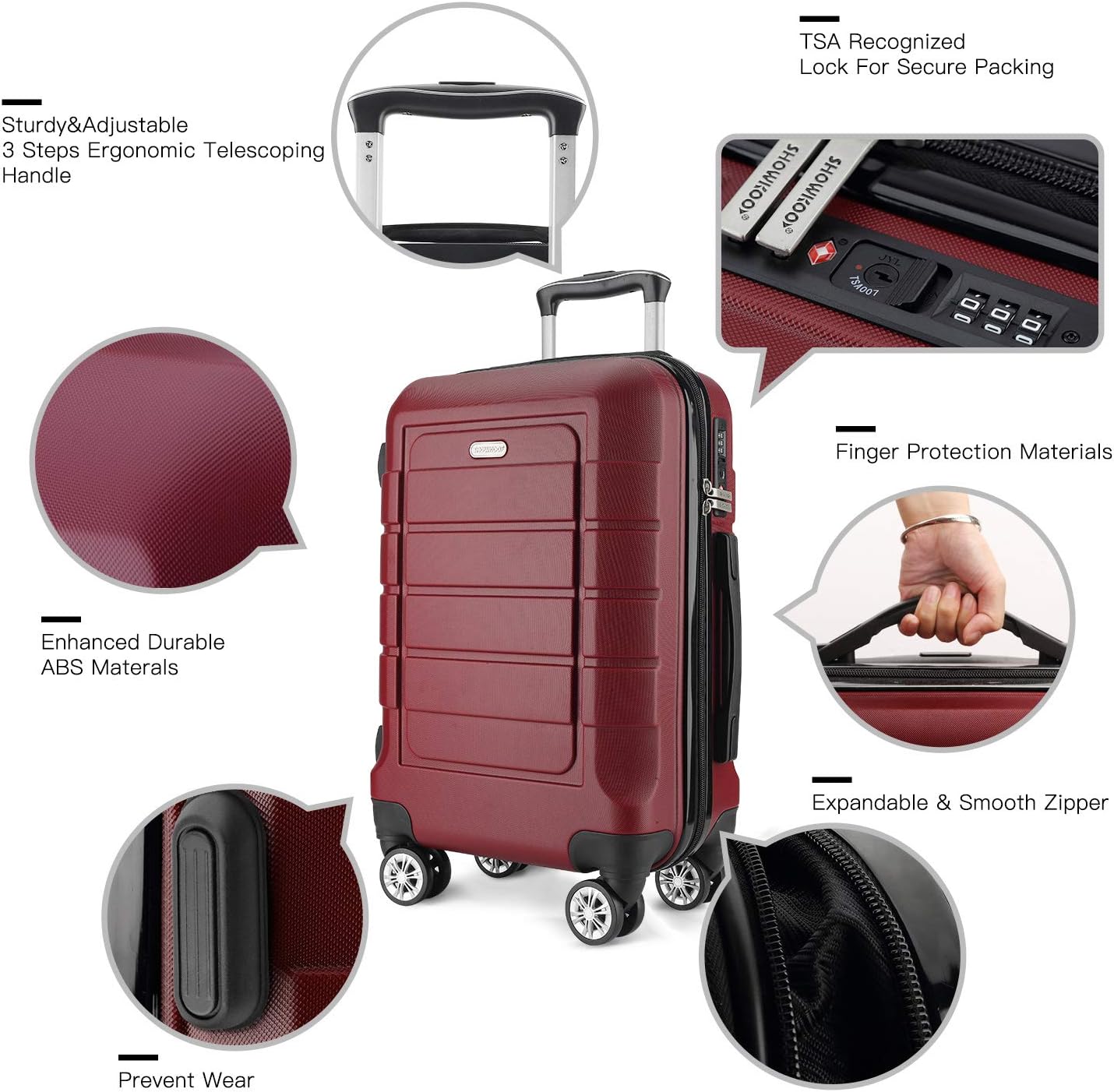 SHOWKOO Luggage Sets Expandable PC+ABS Durable Suitcase Double Wheels TSA Lock Red Wine.