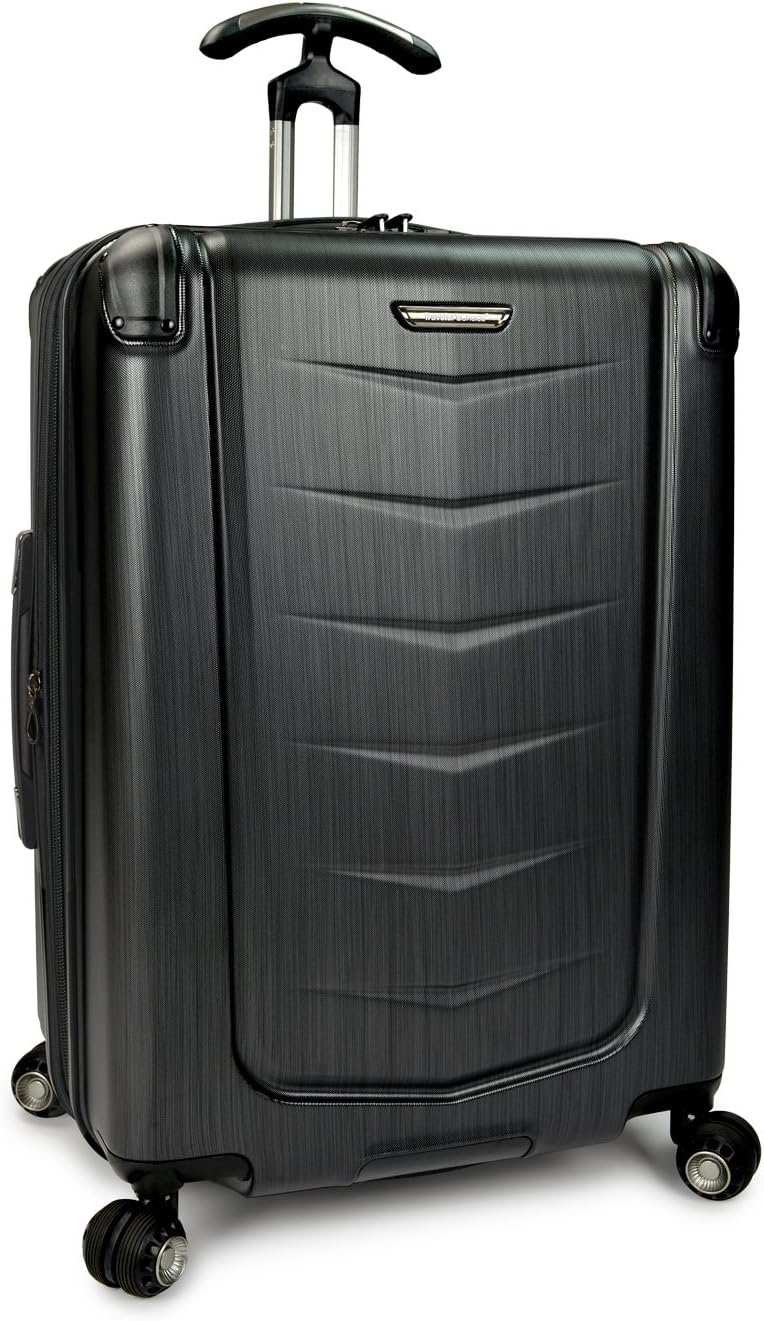 Traveler's Choice Silverwood Polycarbonate Hardside Expandable Spinner Luggage, Brushed Metal, Checked-Medium 26-Inch.